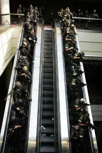 Today 17,000 local police forces are equipped with such military equipment as Blackhawk helicopters, machine guns, grenade launchers, battering rams, explosives, chemical sprays, body armor, night vision, tasers and stun grenades, rappelling gear and armored vehicles. Some local police departments have military tanks under wraps.