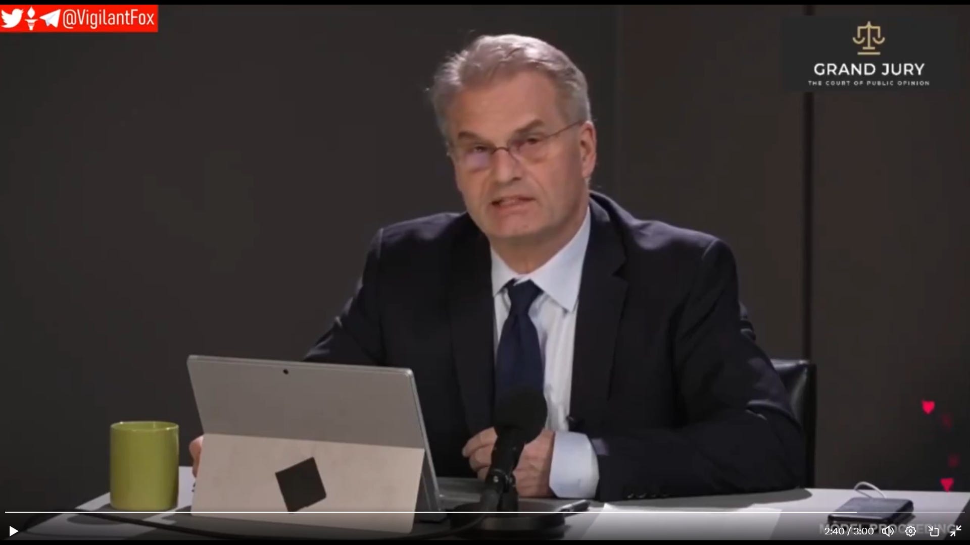 Dr. Stuckelberger repeatedly requested, “Free Reiner Fuellmich not only Assange [1:01:53].” Dr. Stuckelberger touched the most delicate nerve when she reported that her poster concerning freeing Reiner Fuellmich was “disallowed” for display at the protest [1:04:35]. While Julian Assange has remained a thorn in the side of the global elite, Reiner Fuellmich represents much more of a threat, so much that he not only had to be silenced – but furthermore, all mention of his name had to be censored. It therefore bears underscoring his message which is vividly presented here by Reiner himself:
