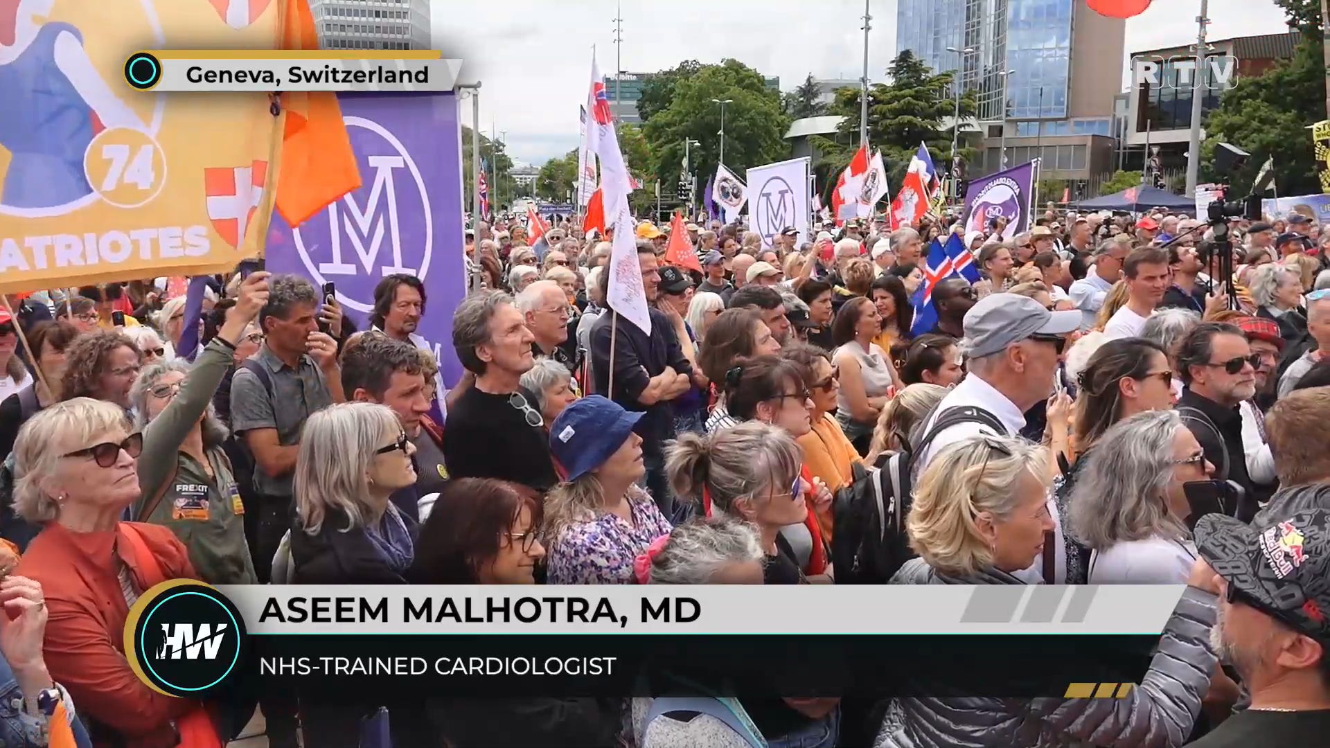 “Liberté, Liberté, Liberté!” chanted the massive crowd in unison. People from Australia, Canada, New Zealand, Europe, and the United States gathered in front of the United Nations Headquarters in Geneva, Switzerland to protest against the WHO and UN attempted power grabs. Dr. Aseem Malhotra, a U.K. cardiologist who is renowned around the world for his courage, decency, and outspoken commitment to truth and health, has surfaced as the guiding voice to humanity, the 8 billion inhabitants of the planet Earth, who are facing an onslaught by an unelected tiny group of billionaires. “The world deserves an apology from the World Health Organization [45:08].” Malhotra pointed out how they failed us in the last pandemic by destroying our health, and how they cannot be allowed to dictate future public health campaigns. He implored the world to refuse.