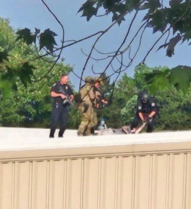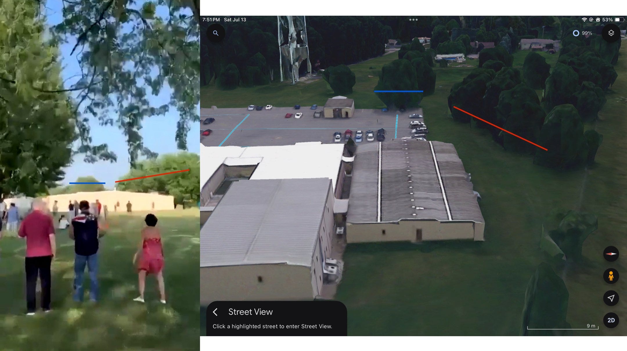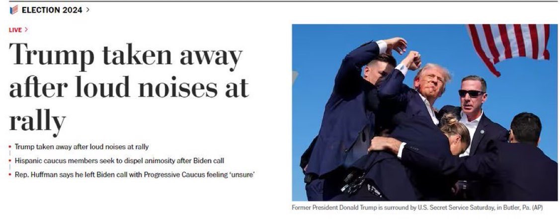 You can see the woman in the red hat directly behind Trump goes down very fast, and she appears to be the second victim now announced as deceased. An off-duty surgeon confirmed a victim in the stands was hit in the head and had ‘brain matter’ scattered, which points to a high powered caliber. The shooter was seen being subsequently pulled from the roof of this building adjacent to the rally: A bystander says he saw the shooter climbing the roof and tried to warn cops and secret service, who ignored him: Now there are reports that Trump tried to beef up his security detail but has been denied by Biden’s DHS: This comes only days after Biden and other prominent democrats dog-whistled to their radical supporters to paint Trump as someone who had to be ‘stopped’ at all costs: — But the most shocking thing of all, is there is now a clearly coordinated total blackout happening of the term “assassination” or assassination attempt” between the regime media which comprises the fourth branch of government and all the attendant deepstate elements up and down the chain. Scoop from DC Draino: