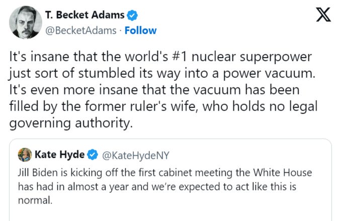 Here’s Israeli media showing its true face in declaring that Lebanese civilians are indistinguishable from Hezbollah ‘terrorists’, a precursor to the whitewashing of the planned genocide: But what’s been understated is the true reason for why Israel is suddenly so desperate to expand the war to Lebanon. There are several reasons, of course, with varying importance; and while each play a part, let’s look at the most significant. 1. Firstly, Israel’s economy is in danger of crumbling partly owing to the fact that the productivity of the entire north has been disrupted by ongoing repercussions of the Hezbollah fight. Tens if not hundreds of thousands of settlers have fled, farms have been abandoned, etc. This much Netanyahu has openly stated even yesterday in a new speech—that the north must be ‘secured’ in order to bring people back, otherwise it can turn into an abandoned wasteland as Israeli’s don’t quite have the same taste for living amidst open hostilities as the nearby Arabs whom they’ve subjected to such conditions for years. This was exacerbated today when Hezbollah unleashed a large attack which pierced the Iron Dome and slammed into several neighborhoods. The damage seemed unclear but houses, cars, etc., appeared on fire from published videos. We’ll call this reason the most overt and ostensibly ‘official’ one, for the sake of political optics. But there are deeper ones. 2. Another major reason that few have gleaned or spoken of is a broader strategic one. Israel has not only likely deduced its time is running out due to the wane of the US Empire which is its chief supporter and provider, but more specifically, Israel may be taking advantage of a short window of unprecedented American weakness and total lack of leadership. As most know, there is pretty literally no one in the ‘driver’s seat’ of the executive branch at the moment. The entire US government is being run managerially by deep state operatives, members of the cabinet, etc. After Joe Biden was openly couped months ago, he has effectively been placed in a kind of holding cell, where he appears to have been instructed to keep quiet, keep out of the spotlight, and basically run out the clock under threat of consequences. The country is now being entirely run by a slew of minions like Jake Sullivan, Antony Blinken, etc. If you need any proof of this, just observe two exemplar videos from the past day alone, which are outright shocking. The first is an absolutely wasted, mentally unfit, droopily sad looking Biden croaking out some feeble introduction to his wife, who is now unprecedentedly heading the Cabinet meeting in his stead. It is the firstCabinet meeting since October of 2023—the first in an entire year, and it’s not being run by Joe but Jill sitting at the head of the president’s seat: Then there was this incident when visiting PM Modi was humiliated by a Biden that seemed to have glitched out in introducing him: NY Post: