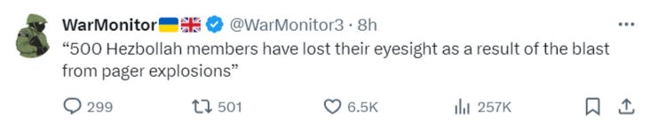 The Israeli conflict has again begun escalating to what looks like a major war in Lebanon. I say ‘looks’ because I personally am still quite skeptical such a thing will happen for a variety of reasons we’ll mention. But first let’s cover some of the developments. Israel carried out its pager and radio attacks. Many initially thought the pagers’ batteries exploded, but this is nonsense. They planted explosives inside and activated them likely with a phone call. The reason we know this is one of the videos of them exploding, one can hear various beeping sounds or ringing mere seconds before the explosion. Secondly, there was a preponderance of eye injuries, which appears to imply the pagers rang or beeped, causing the victims to bring them up toward their face to inspect the number or message, after which the explosion hit them directly in the eyes: As such, it seems the classic phone activation you see so often in movies. By the way, listen to China’s UN rep Fu Cong’s blistering condemnation of Israel, which uses very uncharacteristically strong language: Now it’s clear that Israel is desperate to provoke Hezbollah in attacking it first, so that it can have the casus belli and global consensus in waging another genocide to cover for the first one in a sort of genocide-Ponzi scheme.