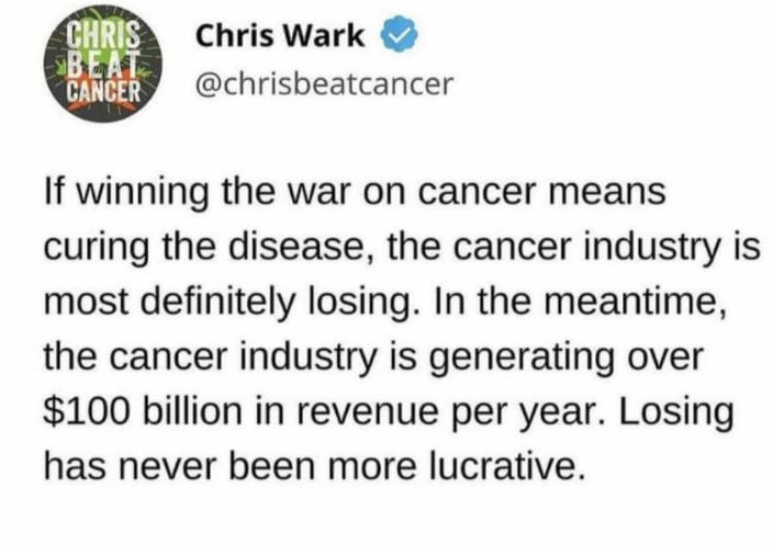 Thu 12:01 am +00:00, 26 Sep 2024 3| Irish people are addicted to the cancer industry. They’re in a trauma bond with their doctors and hospitals, consumed with getting bloods and scans and screening done while making themselves sick with worry as they wait for the results. The real pandemic is hypochondria. That’s not to say the nation is not sick but it is a sickness that is for the most part self-inflicted and caused in large part by the ‘healthcare’ choices people make. Phony medical testing schemes are the new sacraments of atheistic Ireland dispensed by the high priests of pharmacon from the altar of the HSE (Hell Circus Executive). I met a man in his 80s recently who illustrated exactly how it works. He’s lived the healthiest of lives, is fit as a fiddle, and should live well into his 90s. But that’s unlikely because his drug-pushing doctor is now running the show. Following ‘routine tests’ ($$$), he’s been told he’s riddled with cancer even though he felt fine before he went in for them. The diagnosis is dubious of course but he’s been put on chemo and radium ($$$) and he’s now feeling lousy and believes it’s killing him. Why are you doing it so, I asked? I don’t want to go against my doctor, he replied. Saying ‘no’ to the white coat simply wasn’t an option for him. And that is sadly what happens in consultants’ clinics every day of the week when vulnerable, trusting, ignorant people are bullied into taking poisonous courses of chemo that will kill them, in the same way they rolled up their sleeves believing an untested injection would release them from lockdown and clear up a non-existent virus. Throughout the last four years, we’ve all been on a learning curve when it comes to health. Those of us who’ve done the deep dives now understand there’s no such thing as viruses or an immune system, contagion is a myth and you cannot catch a cold, or any condition, from another person. Our bodies are healing machines renewing themselves every day and tolerating all sorts of bad behaviour from their owners. We get a new skin and liver every few weeks. But most people – especially in Ireland due to the demon drink – abuse their systems and then wonder why they end up getting ill. They rarely if ever put two and two together. The symptoms of illness are nothing more than the body’s constant efforts to heal, purify and cleanse itself of the toxins we expose it to. But the first thing most people do when they feel unwell is run to the doctor and pharmacy for something that will mask those critical aches, pains, coughs and fever and make them sicker in the long run. When it comes to cancer, the body is simply trying to carry out a detox, by collecting toxins together in a protective sac called a tumour. The purpose of tumours is to keep those toxins out of circulation in the rest of your body until such time as it is disposed of through excretion and other methods of expulsion. Just like you seal your garbage up in black sacks when you’re going to the dump. There are ways we can expedite this process of course by fasting, avoiding alcohol, sugar and junk foods, and getting more sunshine, but tragically most people choose the medical industrial complex whose first course of action will be to cut into the tumour, release the toxins and start pumping more poison into the body through insidious chemo drips. No wonder their track record is so woeful. The purpose of today’s medical profession is not to heal you but to mask your symptoms so you believe you are well. We have to go back 100 years ago to see how the profession was captured by nefarious forces. The American Flexnor report of 1910 – funded by depopulationists Rockefeller and Carnegie – eliminated holistic, natural healing from medical education replacing the university curriculum with a new biomedical model that prioritised profits over patient care with artificial drugs, vaccines, radiation and surgery. Back then, they could never have imagined that by the 21st century the pharmaceutical industry would have bought off the majority of governments, hospitals and doctors, not to mention the media whose most important role is to protect the public from large drug companies. In this interview, https://gemmaodoherty.com/cancer-is-your-body-healing/ , Dr Tom Cowan debunks the mythology around cancer and explains what is really going when tumours develop and what you can do to help your body when it is detoxing, specifically looking at the important role played by water. He also explains how Your body will only heal itself if you give it the right conditions. Food is your medicine. Medicine is your food. And abstaining from food regularly is another vital way to stay well. What we call illness is the body’s attempt to heal. As Dr Cowan describes, most people, including most doctors and scientists, are scientifically illiterate. The only disease that exists is victim consciousness: ie the attitude that the disease is not your fault. Just genetics or bad luck. It’s time to stop playing the victim and take responsibility for our own health. First rule of thumb: stay away from doctors. Your life could depend on it. I think Dr Cowan’s interview will be of interest to you – you’ll find a lot more of his work on Bitchute – https://gemmaodoherty.com/cancer-is-your-body-healing/