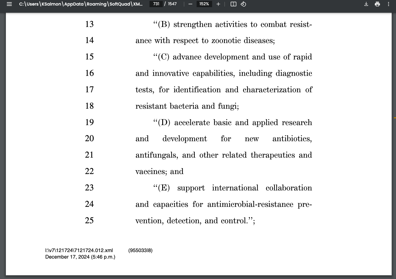 More PandemicsPage 705 begins the section titled “Public Health Emergency Preparedness Program.” The section comprises sweeping rules over “community-based organizations, including faith-based organizations, and other public and private entities.” Measures in the section address “a pathogen causing a pandemic, including pandemic influenza.” For these purposes, the bill earmarks roughly $1.5 billion. Specifically, “$735,000,000 for each of fiscal years 2025 and 2026” which are “to remain available through December 31, 2026.” The March omnibus bill already allocated over $1 billion for a future bird flu pandemic. This means the U.S. government in 2024 alone has attempted to have roughly $2.5 billion in the ready specifically for a coming influenza pandemic. All while it performs gain-of-function experiments on influenza viruses and creates an influenza vaccine at the same time. More Vaccines for ‘Zoonic’ Diseases, Like Bird FluPage 730 cites “manufacturers” and other “private entities” that will be part of a group tasked to “strengthen activities to combat resistance with respect to zoonotic diseases.” ‘Zoonotic’ infectious diseases are infections that can be transmitted between animals and humans, like COVID-19 and H5N1 avian influenza bird flu. The group must “accelerate basic and applied research and development for new antibiotics, antifungals, and other related therapeutics and vaccines.” | ||||||||||||||||||||||||||||||||||||||||||