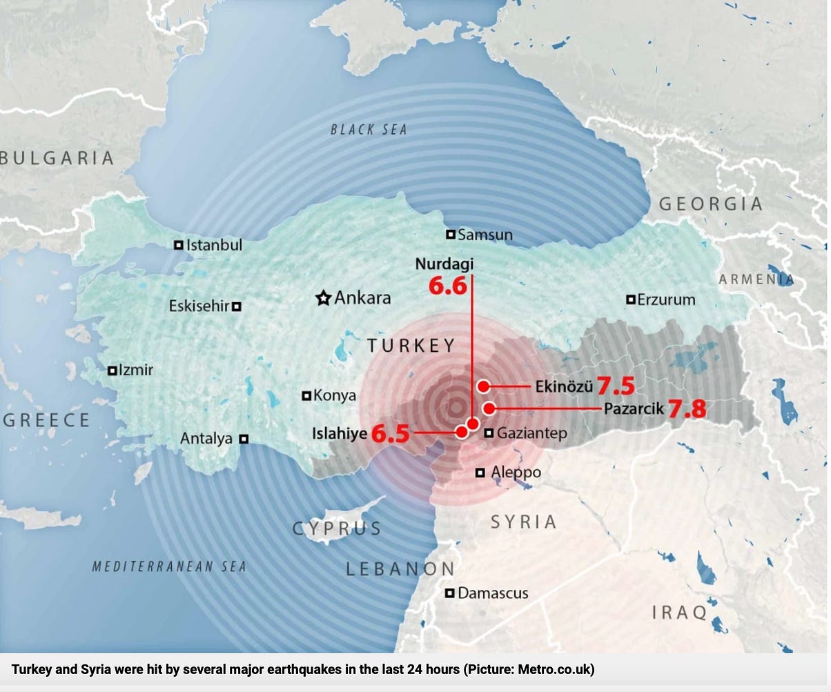 May 14, 2023 Turkey ElectionsTurkey’s May 14, 2023 presidential and parliamentary elections occurred four months after the February 2023 earthquake,Washington’s objectivewas to: “replace Erdogan” with an obedient US proxy. No easy task: their chosen successor to Erdogan was a proxy of the opposition Kemel Kılıçdaroğlu, who was head of a six-party coalition “united by the sole aim of removing Erdoğan from power.” Erdogan’s Justice and Development party ultimately won the May 14, 2023 presidential elections. Washington regime change attempts (2016, 2023) to remove Erdogan had failed. The earthquake happened four months before the May 2023 election. Washington’s ultimate objective was to dismantle both Turkey’s alliances with Russia and Iran, while reintegrating Turkey back into the Atlantic Alliance as an “obedient NATO country”, no more “sleeping with the enemy.” December 2024: The US-NATO-Israel-Turkey War on SyriaDespite America’s attempts to get rid of Erdogan (2016, 2023), Erdogan won the May 14, 2023 elections (see above). While Turkey will retain its NATO membership, it is unlikely that it will cancel its alliance with Moscow and Tehran. President Erdogan’s objective is to consolidate and confiscate territories in northern Syria while negotiating with the United States regarding Washington’s support of Kurdish rebels in Northern Syria and Iraq. In as much as Russia and Turkey are allies of Iran, an all-out war against Iran at this juncture is unlikely to occur. It is worth noting that Turkey and Israel have an agreement pertaining to the production of advanced weapon systems. This alliance between Israel and Turkey still prevails: President Erdogan and Prime Minister Netanyahu have a close and long-standing personal relation. Moreover, Russia’s President Putin and Prime Minister Nentanyahu have also a close personal relationship, not to mention that a large percentage of the IDF is made-up of Russian Jews. At the moment, escalation towards a third World War III scenario is largely dependent on the structures of military alliances: specifically the alliances of Turkey with Russia and Iran. Turkey controls the access from the Mediterranean and the Black Sea, which is an impediment to NATO. Russia and Turkey control the Black Sea (including land and waterways towards Iran). It is also important that member states of the North Atlantic Treaty Organization consider cancelling their NATO membership under Article 13 of the Washington Treaty. —Michel Chossudovsky, December 18, 2024 Original article published in 2023: IntroductionThe latest reports point to a death toll in Turkey and Syria well in excess of 50,000, more than half a million injured, tens of thousands of people missing. The social devastation and destruction is beyond description. The first and second earthquakes on February 6, 2023 in Kahramanmaras province in Southern Turkey were respectively of the magnitude of 7.6 and 7.8 (Richter scale). A third earthquake of a magnitude of 6.3 was recorded on February 20th. In Turkey, some 530,000 people have been evacuated from the disaster area. Ankara confirms that “173,000 buildings have so far been recorded as collapsed or severely damaged, with more than 1.9 million people taking refuge in temporary shelters or hotels and public facilities.“ In the words of President Recep Tayyip Erdogan: ““We are living through the most painful days in our history”. In Syria, the earthquakes have largely affected the cities of Aleppo, Lattakia and Hama which are within proximity of Syria’s Northwestern border with Turkey. The latest announced death toll in Syria was 5,914, with 8.8 million people affected. President Bachar Al Assad underscored that US-NATO has been at war with Syria for almost 12 years, while emphasizing that “Syria has not been an earthquake area for about two and a half centuries”. In this article, Part I will focus on the History of Earthquake Activity in Turkey, while underscoring the fact that prior to the February 6, 2023 earthquake, there was no recent evidence or historical record of “major earthquake” activity in Southern Anatolia. Part II will provide a Review of Environmental Modification Techniques (ENMOD). Part III will focus on The Convention on the Prohibition of Military or Any Other Hostile Use of Environmental Modification Techniques, ratified in 1977 by the UN General Assembly. What is significant in regards to the Turkey-Syria earthquake disaster is that the 1977 UN Convention (cited above) contains provisions for the conduct of an investigation in regards to “destruction, damage or injury” incurred by the “State Parties”, under the auspices of a UN “Consultative Committee of Experts”. There are also provisions in the Convention for referral to the United Nations Security Council on behalf of the “State Parties”. These issues are outlined in Part IV. Part I: History of Earthquake Activity in TurkeyIn regards to Turkey, geological analysis suggests the following: