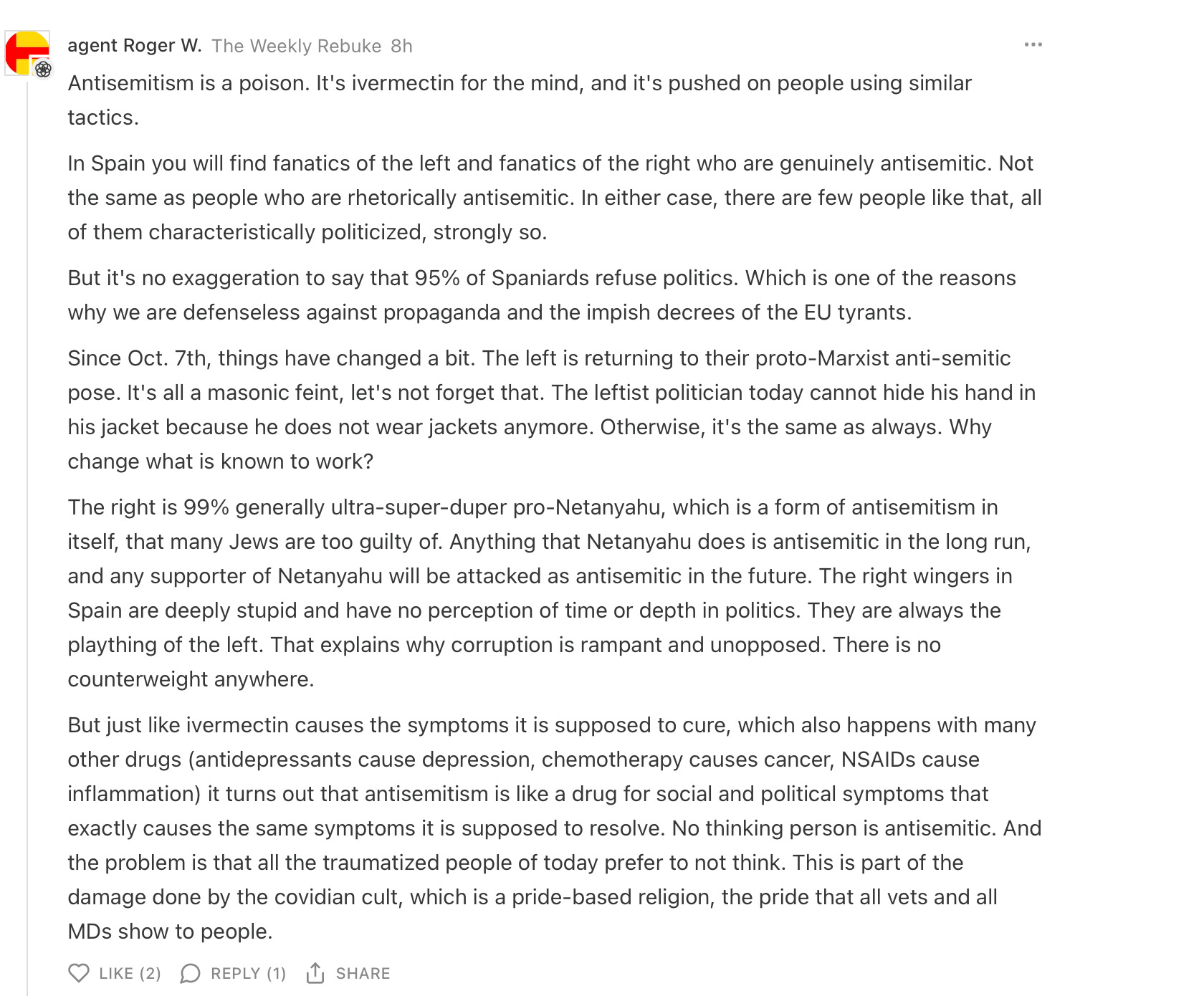 Agent Roger W. left a comment, picking up on the “anti-semitism” part of my story. I leave it here, and will write more on the subject in a future post. “Masonic feint,” as a new term, coined by Roger, will help us a lot in the coming era. It’s not enough to say: “There’s no left and right…” Rather, both are deployed from each end toward the middle, for the un-seen dance Agent Roger has now named the Masonic feint. We may even be able to get some of our friends back, in 2025.