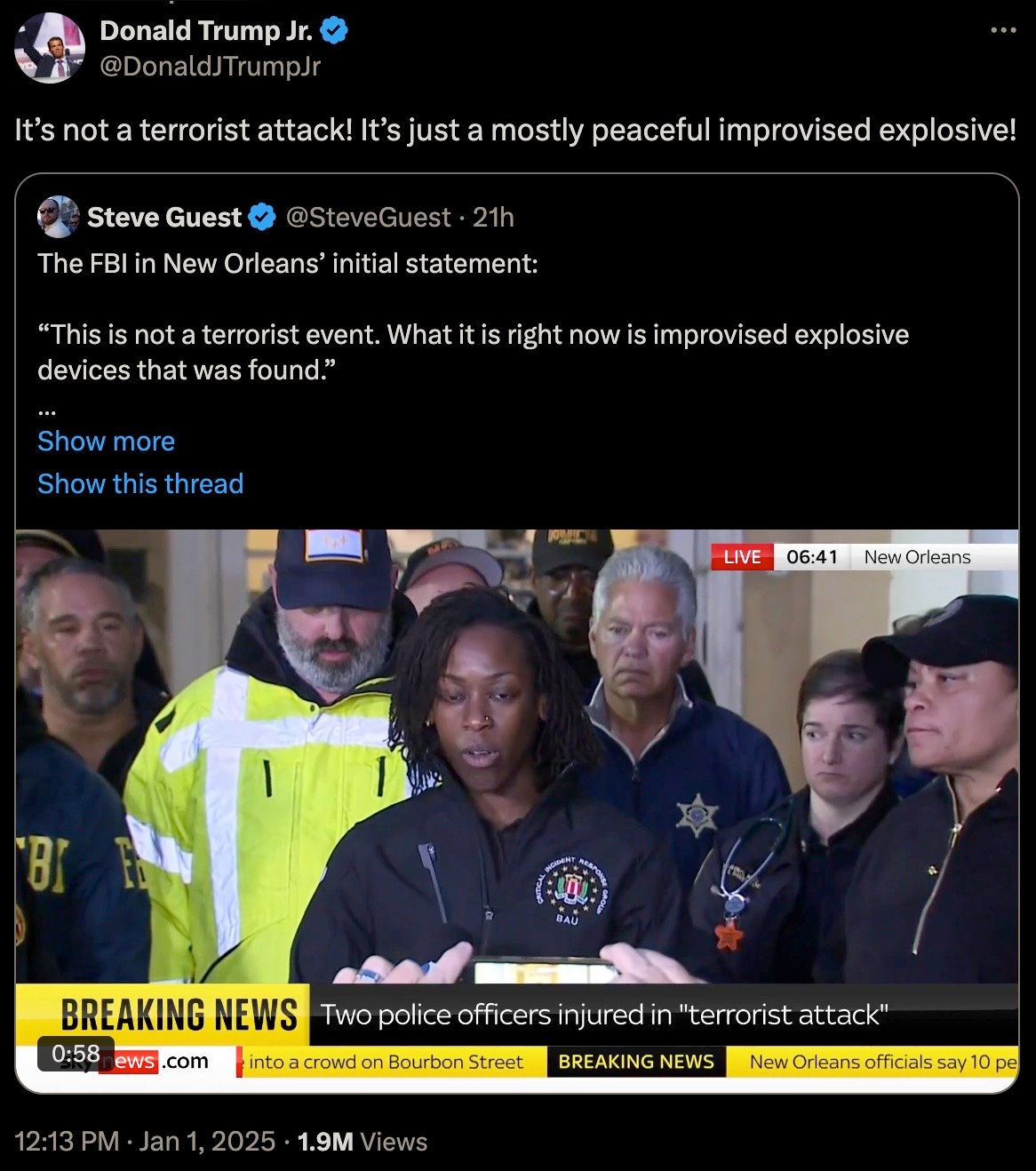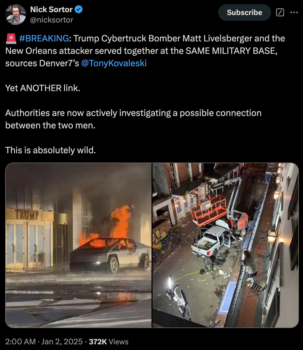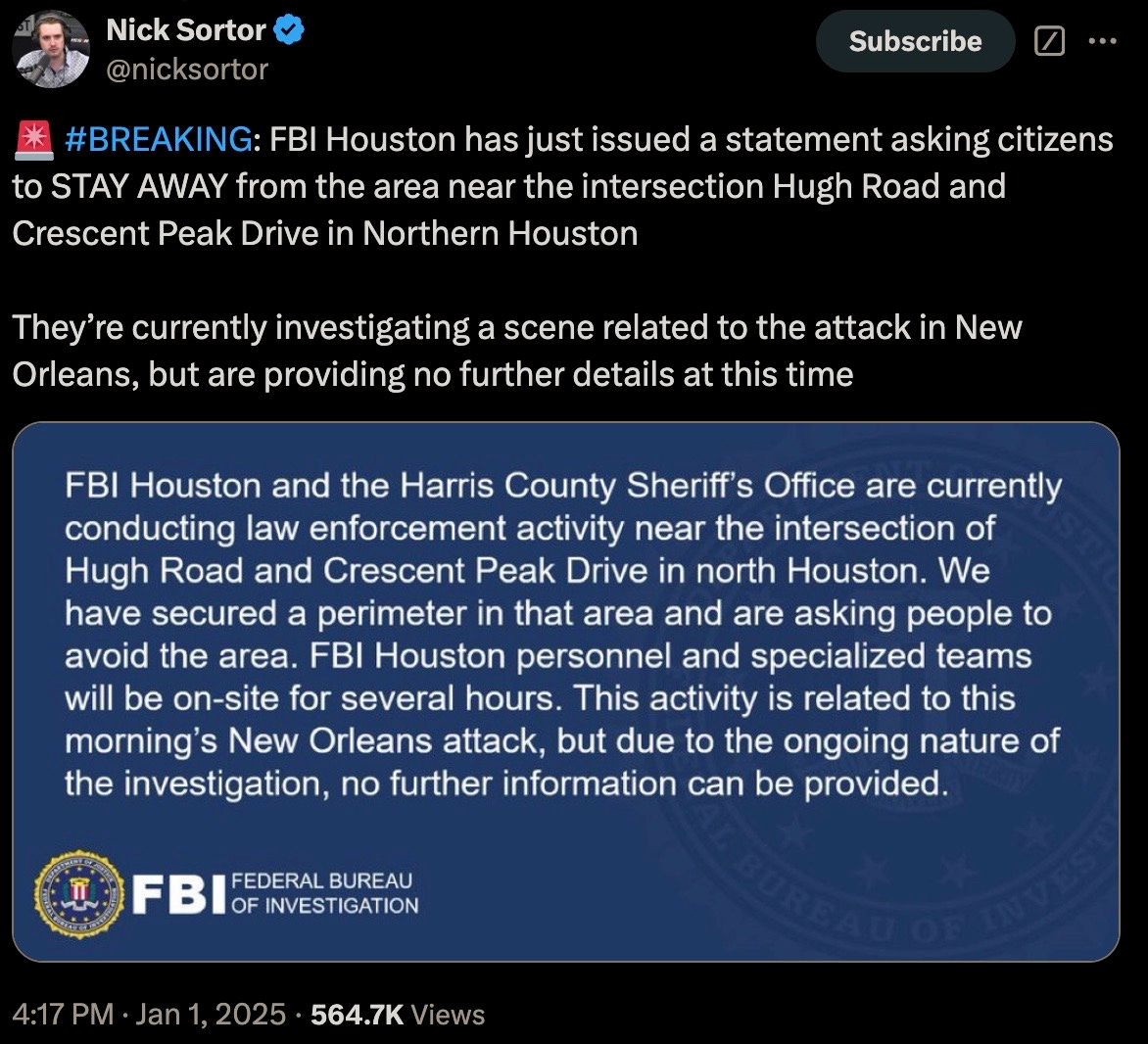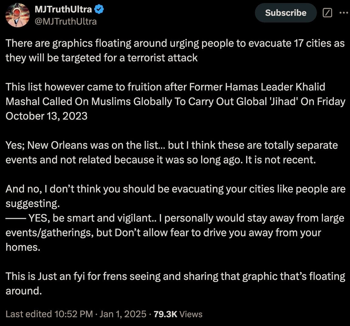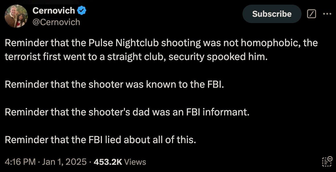 Thu 2:24 pm +00:00, 2 Jan 2025| With President Trump’s second inauguration fast approaching, the 4th branch of government often referred to as the Intelligence Industrial Complex have now commenced the deployments of their various false flag and psyop events. Concurrent to breaking out their PSYOP-BIRD-FLU followup scamdemic, which is clearly not inducing sufficient levels of mass fear in the populace, we are now being treated to the terrorism phase of their desperate bid to remain in power. More than 30 people were injured and at least 15 killed during a New Year’s Day terror attack when US-born Army vet Shamsud-Din Jabbar rammed his pick-up truck into revelers on Bourbon Street in New Orleans in wee hours of the night. Shamsud-Din Jabbar was inspired by ISIS after converting to the radical religion of peace: The pixelated Islamist after being neutralized by local law enforcement: The ISIS flag that was in his pick-up truck: Of course, the treasonous and criminal FBI were hard at work out of the gate gaslighting anyone who still believes a word of what they say: The FBI, a wholly illegitimate agency, have been the guardians of radical Marxism and enemies of We the People since inception, defending anyleftist terrorist, and the higher the body count, the greater the agency spin. It would then come as no surprise that Shamsud-Din Jabbar was in fact a proud Democrat: In case anyone somehow still believes that the FBI is anything but a radical Marxist agency itself, their own X post should dispel any doubts of that: And would the FBI ever investigate their partners-in-crime?: That other criminal Three-Letter Agency that is historically in on all kinds of domestic and foreign terrorism, not limited to the PSYOP-19 and PSYOP-BIRD-FLU scamdemics and associated slow kill bioweapon “vaccines,” is more than likely complicit in these latest false flags: The installed senile ice cream licking diaper soiling pedo puppet “president” has confirmed what his CIA and FBI handlers have ordered him to perfunctorily mumble-reiterate, but what “Biden” was not told to mention was that our latest domestic terrorist (versus those other “domestic terrorists” aka the antivax deplorable patriots) was more than likely on the FBI’s radar all along: It would be anything but a shocker to learn that Shamsud-Din Jabbar was actually an FBI asset activated ahead of Trump’s second term, and that given that for the last four years the Southern Border was deliberately opened wide up with the express purpose of importing thousands upon thousands of military-aged men that now constitute multiple sleeper terror cells embedded all across America, and ready to be activated at a moment’s notice: All of this Cloward-Piven treachery has been plotted decades ago by the CIA and FBI, who along with the DoD and Pentagon represent a not insignificant composition of the Intelligence Industrial Complex that is actively waging both soft and kinetic war on We the People: And ISIS is just another spinoff of Al Qaeda and vice-versa, with both being created by the US Deep State and their various assets like Manchurian Candidate par excellence Barack Hussein Obama: Some of the rotten fruits of Barry the Drone King’s treason: The useful idiots have also been reactivated to reinforce the incoming false flags: To further seed and normalize the forthcoming false flags more fear-mongering: Additional “investigations” announced: Concurrent to the New Orleans attack, another especially symbolic terror event was executed right in front of one of President Trump’s hotels, blowing up PSYOP-MUSK’s highly combustable Cybertruck: Does anyone still really believe in “coincidences?” What authorities should be investigating are the likely connections between these two terrorists and their handlers and masterminds over at the FBI and CIA, but then again these lawless agencies never investigate themselves, unless said investigations are in themselves coverups. But the bomb squads and hazmat teams have been deployed after the fact: Circling back to NYC and ever more “coincidences:” That’s a hell of a lot of false flag events in a single 24 hour news cycle to usher in this brand-spanking New Year… As the escalation of Deep State false flags and psyops are being readied for us, now is the time to become as healthy and as hard to kill as possible: Please take full advantage of the LIFESAVING NEW YEAR’S SALE by using code NEWYEAR20 to receive 20% OFF lifesaving products like the Nobel Prize winning miracle drug Ivermectin, the no less miraculous Fenbendazole, Doxycycline, the full spectrum organic CBD oil containing 5,000 milligrams of activated cannabinoids and hemp compounds CBD, CBN & CBG, the powerful immune support nutraceutical and spike support formula VIR-X, and the healthy sugar alternative FLAV-X. Upon adding products to your cart, please go to the cart icon at the top right corner of your browser page and click it, then choose the VIEW CART option whereby you will be redirected to a page where you can enter the code NEWYEAR20 in the Use Coupon Code field. Sale ends Sunday, January 5th (midnight eastern time), 2024. Please contact the company directly with any product questions: info@virex.health They want you dead. Do NOT comply. |