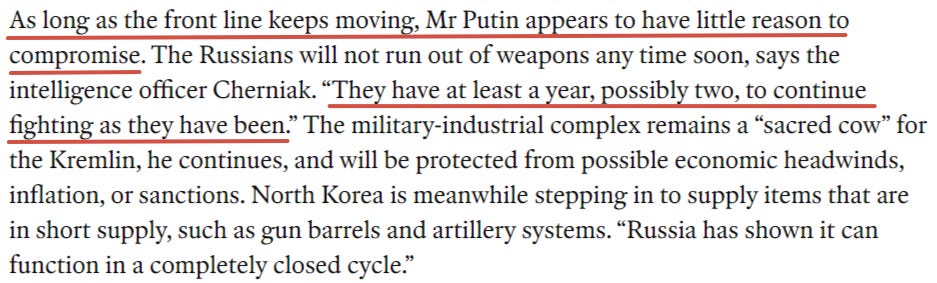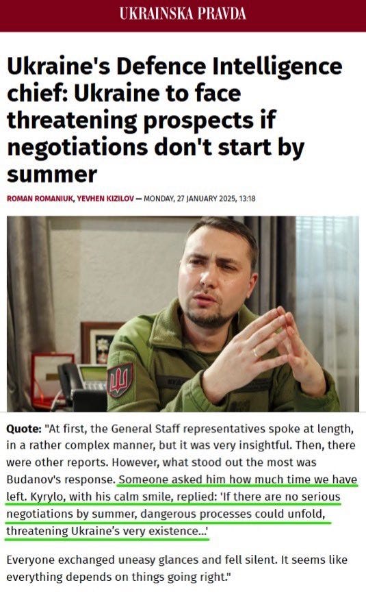 It’s stunning how low-intelligence the typical Western press reader must be to devour wholesale such absurd prima facie contradictions day in and out in each article, like: “Russia is sustaining far more losses, but Ukraine keeps retreating, has no troops left, etc.” Behind the scenes, as always, the mood appears to be different. GUR head Budanov sparked a firestorm of controversy this week when in a closed door session he reportedly intimated that Ukraine faces existential collapse within six months, if negotiations don’t start: Full report from an attendant: