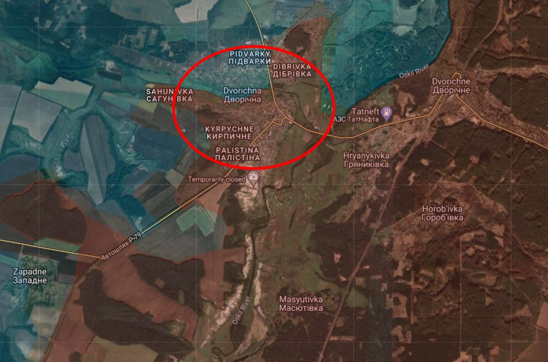 Much farther in the north, last time I reported about the less-talked about growing incursion over the Oskil River north of Kupyansk. Now there have been the first reports that Russian forces have captured their very first settlement on this west bank of the Kharkov region since 2022, called Dvorchnaya: But now there are even reports that Russian heavy armor has appeared on this bridgehead for the first time, which means stable river crossings have now been established and logistics are pouring in to truly cement the growing lodgement.