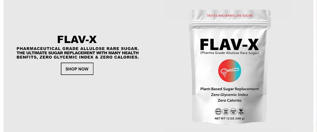 - Removing sugars and carbohydrates (cancer food) from your diet and replacing table sugar with a zero glycemic index, zero calorie, keto friendly rare sugar like FLAV-X