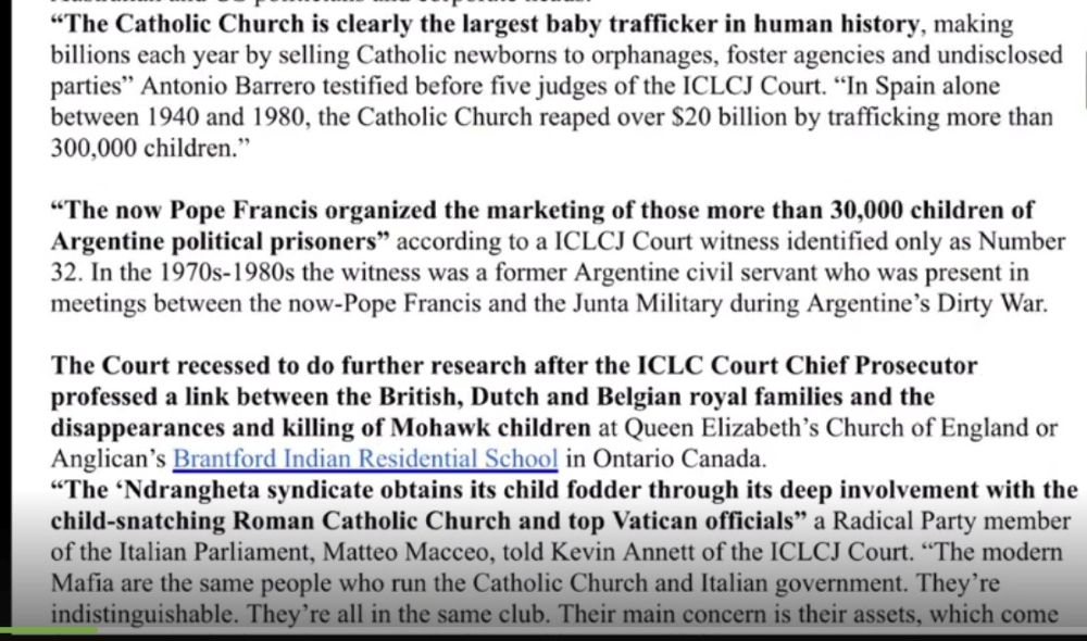 This is one of the links to the information, I am posting this one as it is a recent video, I have other older links that are not as easy to find. The first 4 mins are just an introduction, so start at 4 mins and watch until the 8th minute for details of the court case. I will add some screenshots I have from other videos too. As I say, I am only reporting what is being reported, I am not claiming any validity to the reports, but why don’t the people concerned sue for slander or at least defamation of character, there are other sources saying exactly the same. Again, the report is a very pro Trump, but I like to listen to what the American commentators have to say, as I believe it is their country that is the main target for destruction, it is the ‘capital’ of the free western world.