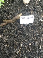 Hi N’, when II grew up, many round here had gardens, now only one other person that I know of has one, and recently we have had an influx of cats for some reason. I have adapted 75% of my garden into no dig. See Charles Dowding on youtube. That seems to pull them in. A funny thing happened a couple of days ago. Beside my garden path, the cats seemed to like a little patch, where they’d pull the soil down onto the path after crapping in it. I buried a piece of galvanised mesh as a deterrent, and stuck a label on it to remind me. see pic.