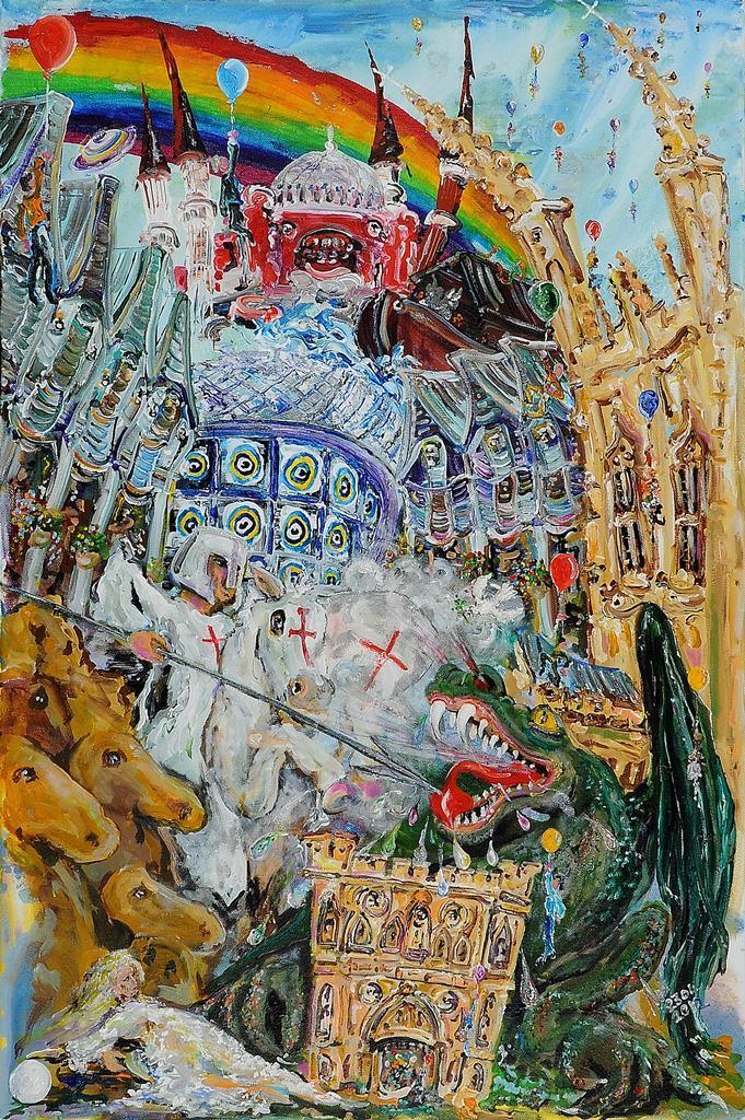 Finally, a fun depiction showing elements of Istanbul and Türkiye, my home for 10 years and my childhood home region of Bury St. Edmunds. The rainbow represents my Istanbul Bosphorus Rainbow Bridge project along with the Ark which allegedly landed on Mount Ararat and absolutely nothing to do with the 6 colour LGBTxyz demonic bastardisation of the ‘rainbow’. There’s a relatively new shopping mall in ancient Bury called the Arc. En plus, another dragon.23 April St. George’s & Children’s Day signed 23.04.2012