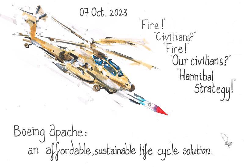 Arther was aware of a report by Israeli newspaper Haaretz that 28 Apache helicopters had been involved in a Hannibal Directive during 07 October. He was so incensed that the evil goblin Nutty Nuttyyahoo was still promoting misinformation that British Ben was obviously repeating that he welcomed activity of action to quench and even quell his fury. When Morph asked for help, Arther was only to pleased to assist. For the uninitiated, this is background briefing on plasticine Morph: