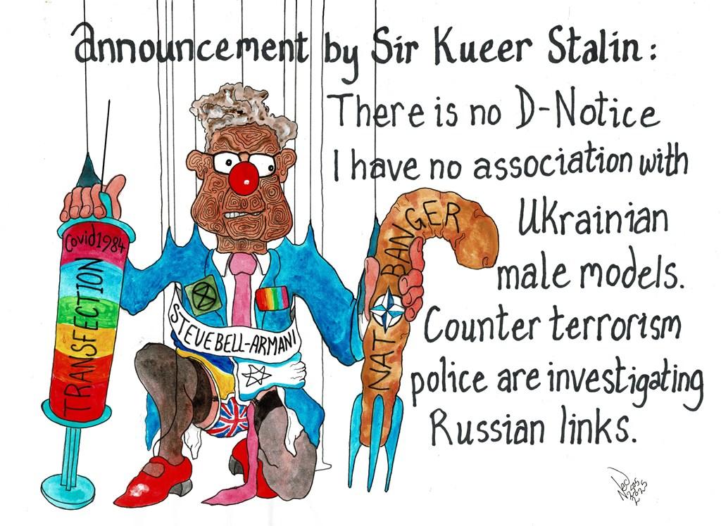 Morph just sort of squeaked back, since he could not speak English nor any discernible human language at all, but Arther being a cartoon character obviously understood Morph. Anyway, Sir Kueer Stalin had assured President Trump and the world’s press that the UK had a proud tradition of free speech and so it must be so.