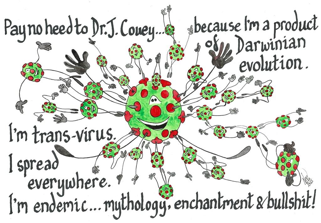 Put crudely, I know I know bugger all, but at least I’ve known and sensed enough to avoid doctors and dentists for 20 years or more. When covid1984 lockdowns were first announced on our news channels I stated out loud to house guests that it was nonsense; it was about Agenda2030, digital ID and there’ll be vaccines. Those particular house guests submitted to the jabs and haven’t been to visit us since. Why did I know? I’m the type who was uncomfortable at the way Terry Wogan attempted to belittle David Icke live on BBC TV. I felt similarly uncomfortable watching Cowan and the no-virus gang lay into Dr. Couey in his absence. I’m the kind of guy who cleans his teeth with coconut oil, bicarbonate of soda, oregano essential oil and liquorice root sticks. I haven’t had an injection since last century, so of course I wasn’t ever going to submit to a covid1984 jab or intramuscular transfection as Dr. Couey calls it.
