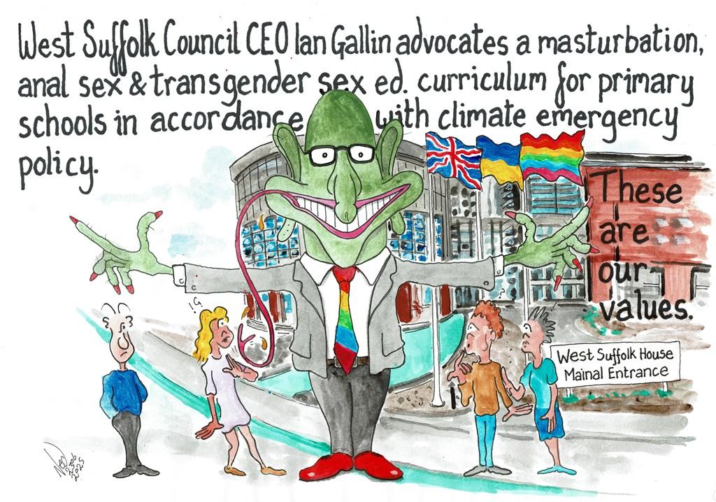 A portrayal of CEO Ian Gallin, who from my experience denies any responsibility for potholes in West Suffolk. He does advocate for climate emergency policy and a sex education curriculum for primary school children including masturbation, anal sex and gender transition. I guess Ian Gallin will secure a 2/3 of his salary in a pension deal. As I typed earlier, nice job if you can get it.