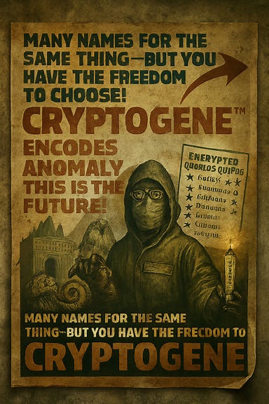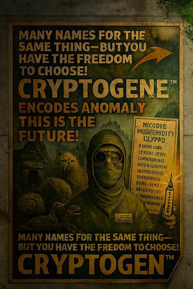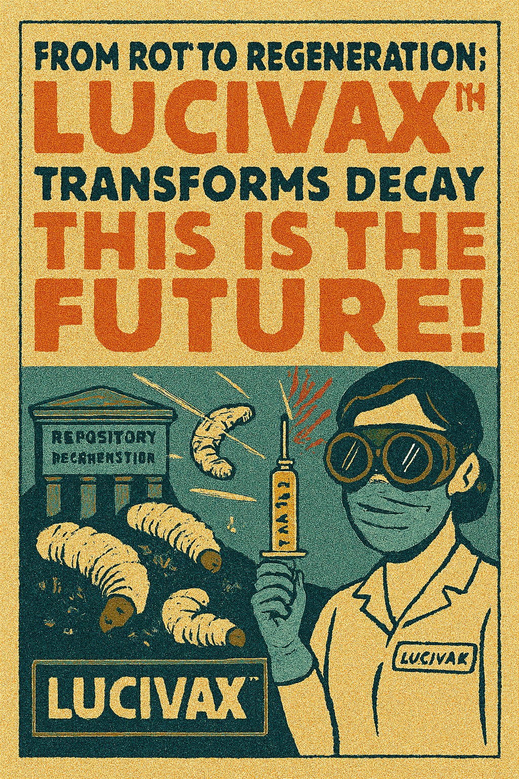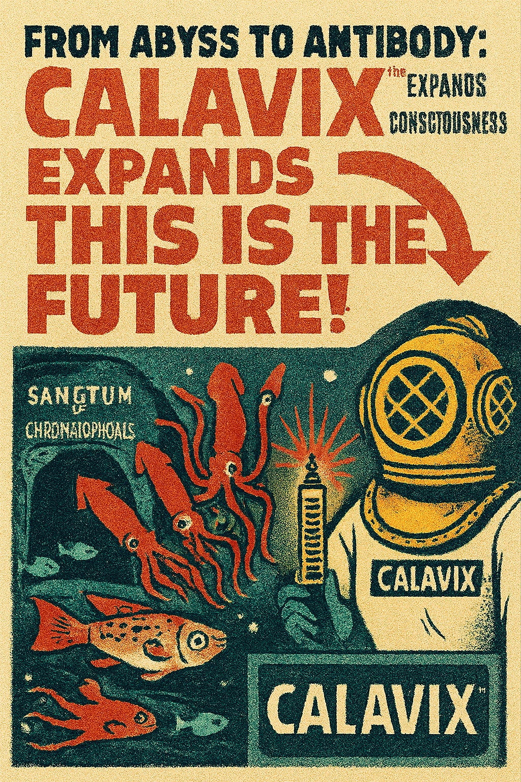 After we deciphered the technical jargon, then unlock & unpack the compressed images they contain, we found a series of sales posters, some still with pre-edit errors. I share them as warning for all, especially all the creatures that mad scientists wish to squeeze into test tubes, cyclotrons, & some such & similar apparatus.