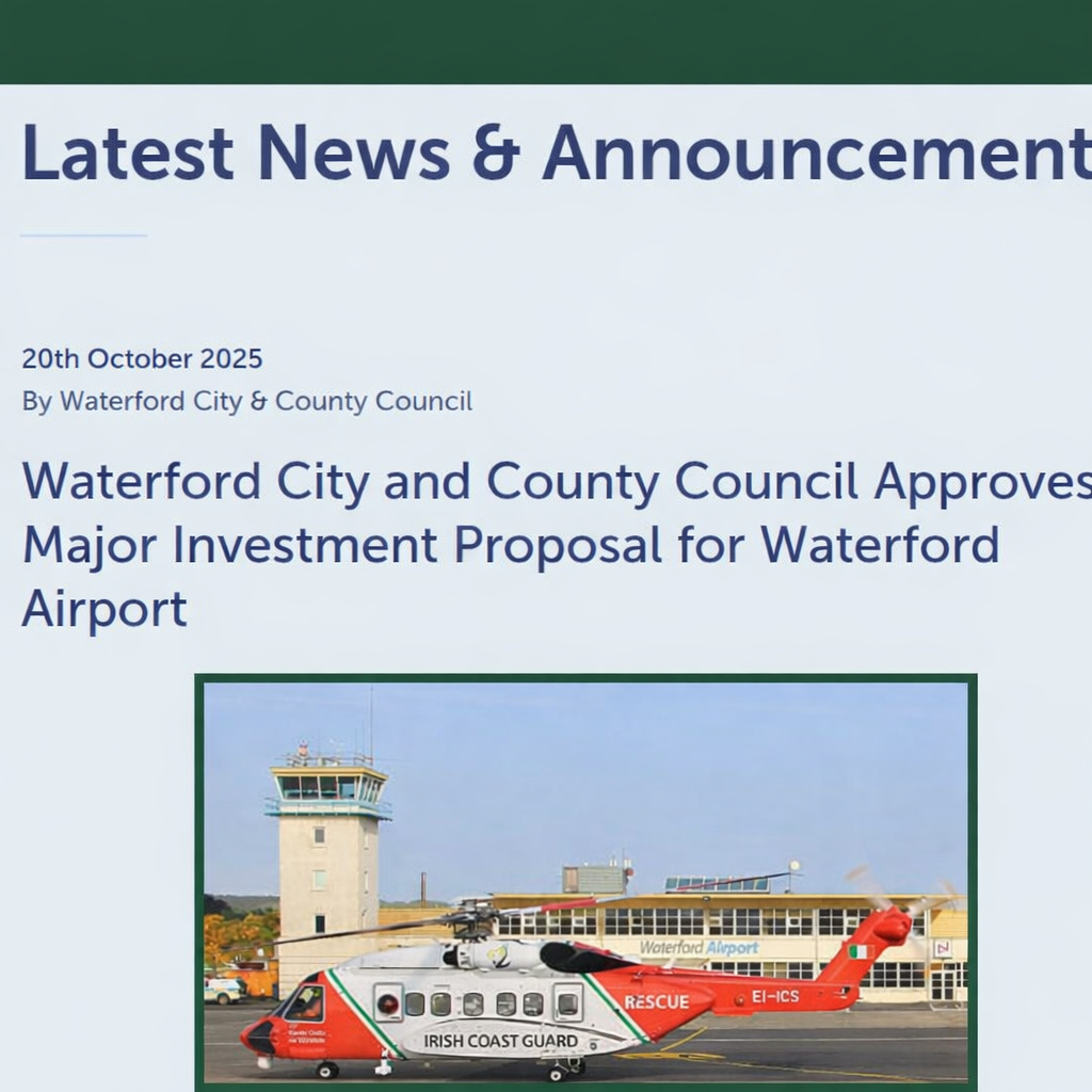 On October 20th 2025, a special sitting of Waterford county and city council was held. On the agenda was the rubberstamping of a mysterious 30 million euro investment in Waterford city airport. Curiously, the identity of the private investor was withheld from the public at the time and remained confidential at the final decision making stage. But, the investor’s legal representative, Mason, Hayes and Curran did confirm that the financier was a US national with significant business interests and that the individual had the financial capacity to deliver a redevelopment of the airport—to include expansion of the existing runway to 2,287 metres and widening of it to 45 metres. However, a key element of the deal-making process was to keep buyer’s anonymity in place. Quite unusual. Councillor and Mayor of Waterford city had the following to say on the subject as per a October 20th press release on the Waterford county council website.
