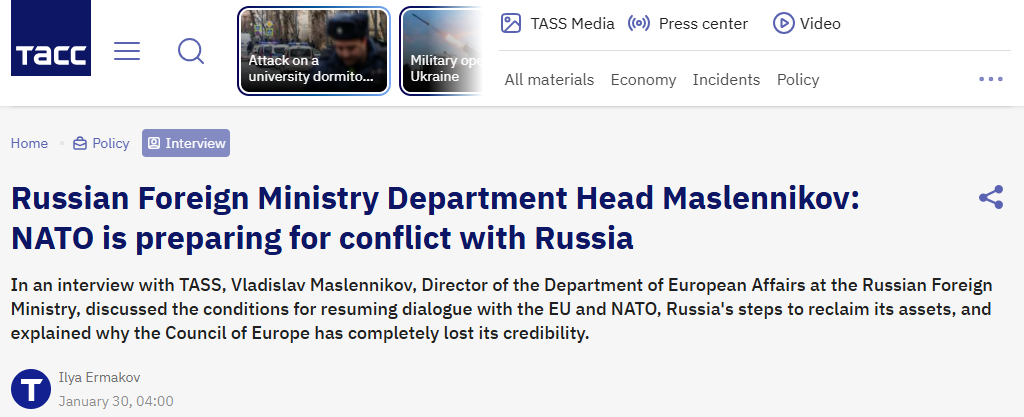 The Kremlin has been nothing but selfless and kind towards NATO, and where’s the gratitude? Russia continues to sell its natural resources to NATO, even as NATO “prepares for a conflict with Russia” (source: Russia’s Foreign Ministry on January 30, 2026).