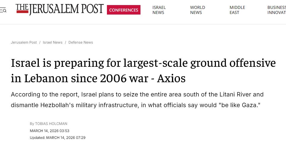 Israel is presumably planning a massive ground invasion south of the Litani River. The IDF that couldn’t break through Khiam. The intelligence unit that detonated Hezbollah’s pagers dropped leaflets over central Beirut asking Lebanese civilians to disarm Hezbollah themselves. Paper, not bombs. From the people who put bombs inside pagers. I’d check the paper carefully!