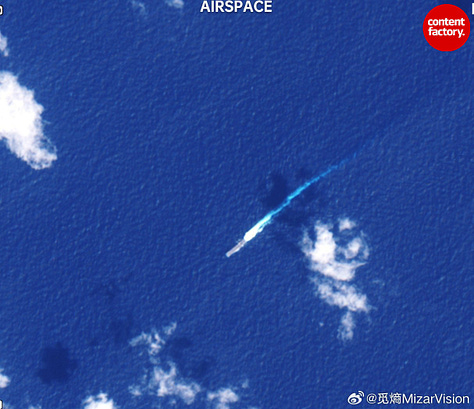 And now 5,000 Marines are steaming toward the Gulf on the USS Tripoli (video). Satellite imagery caught the ship transiting the Luzon Strait at high speed. The 31st Marine Expeditionary Unit. F-35Bs. Heavy-lift helicopters. The works.
