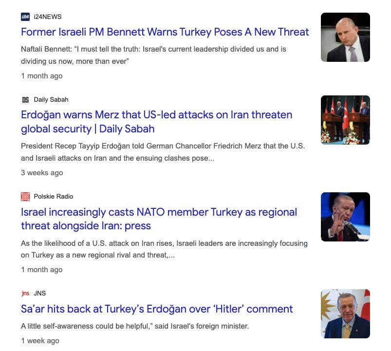 My point: is that the only reason that I can possibly see for promising, publicly, to assassinate or overthrow Erdogan and the NATO lynchpin state of Turkey like the Israeli media is doing now, is if Russia is already an afterthought in these people’s minds. They seem to think that no further attention is warranted and that Turkey has outlived its usefulness, or that this will very soon be the case. If Russia truly was this rising, triumphant, patriotic, anti-Zionist state that the Z-media portrays it as being, alienating Turkey would be the very last thing that the Israeli government would be doing.