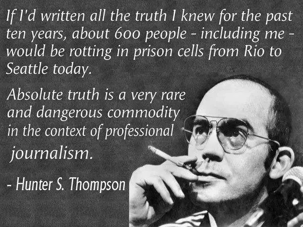 Winter Watch Takeaway: The quote below is no joke, Hunter Thompson literally went over to the dark side. Late in life and sobered up he had an about face and knew just enough to be targeted for silencing.